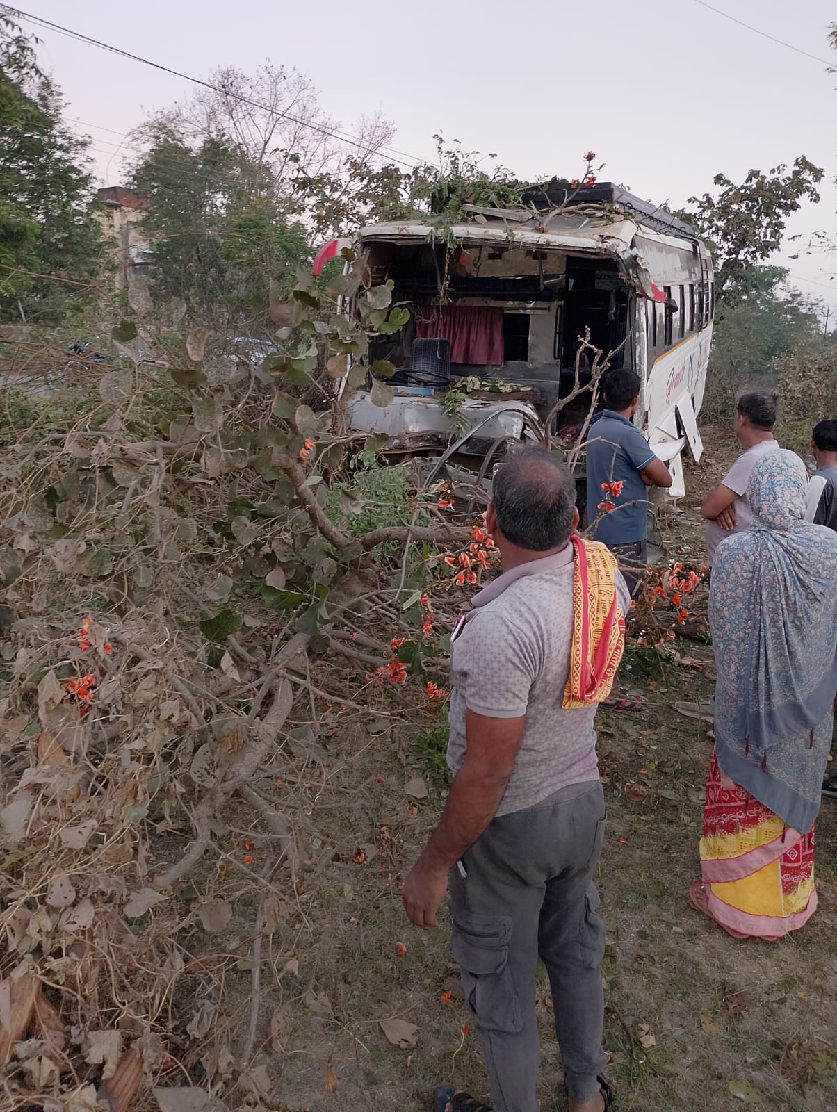 मिळालेल्या माहितीनुसार, गोरेगाव तालुक्यातील चोपा मोहाडी येथील वरखडे कुटुंबाने मध्यप्रदेशातील खैरलांजी नजीक असलेल्या माखेपार येथील मुलगी पसंत केली होती. ११ मार्च रोजी वऱ्हाडी अविनाश ट्रॅव्हल्स कंपनीच्या एमएच ०३, एन ९३५२ क्रमांकाच्या बसने माकेपार येथे लग्नाला गेले होते. लग्न आटोपून रात्रीच्या सुमारास ४५ वऱ्हाडी घेवून बस मोहाडीच्या दिशेने निघाली. पहाटेच्या सुमारास कारंजा नजीक ट्रॅव्हल्सच्या चालकाने टरबूज भरलेल्या मालवाहकाला ओव्हरटेक करत असताना ट्रॅव्हल्सने मालवाहकाला धडक दिली. यात ट्रॅव्हल्सवरून चालकाचे नियंत्रण सुटल्याने ट्रॅव्हल्स रस्त्याखाली उतरली. घटनेनंतर मात्र भितीपोटी चालकाने खिडकीतून उडी मारून पळ काढला. घटना घडली तेव्हा बसमध्ये असलेले सर्व वऱ्हाडी साखरझोपेत होते. मात्र अपघात होताच वऱ्हाड्यांत एकच धावपळ माजली. काही प्रवाशांनी प्रसंगावधान राखत खिडकीतून बसमध्ये अडकलेल्या प्रवाशांना तातडीने बाहेर काढण्यात आले. घटनेची माहिती मिळताच कारंजा येथील नागरिकांनी घटनास्थळ गाठून जखमींना तातडीने रुग्णालयात हलविले. या घटनेत सोनू घनशाम उईके (२७, रा. वाडी नागपूर) या प्रवाशाचा मृत्यू झाला. तर ४ प्रवासी गंभीररीत्या जखमी झाले. त्यात हेमराज चौहाण (५०, रा. कवळीटोला), शोभा उदल पंधरे (७०, रा. कोहमारा), नैतीक शाम सिडाम (१४, रा. कोहमारा) आणि लक्ष्मी घनशाम उईके (६५, रा. वाडी नागपूर) यांचा समावेश आहे. गोंदिया ग्रामीण पोलिसांनी घटनेची नोंद केली असून पुढील तपास करत आहेत.
