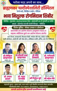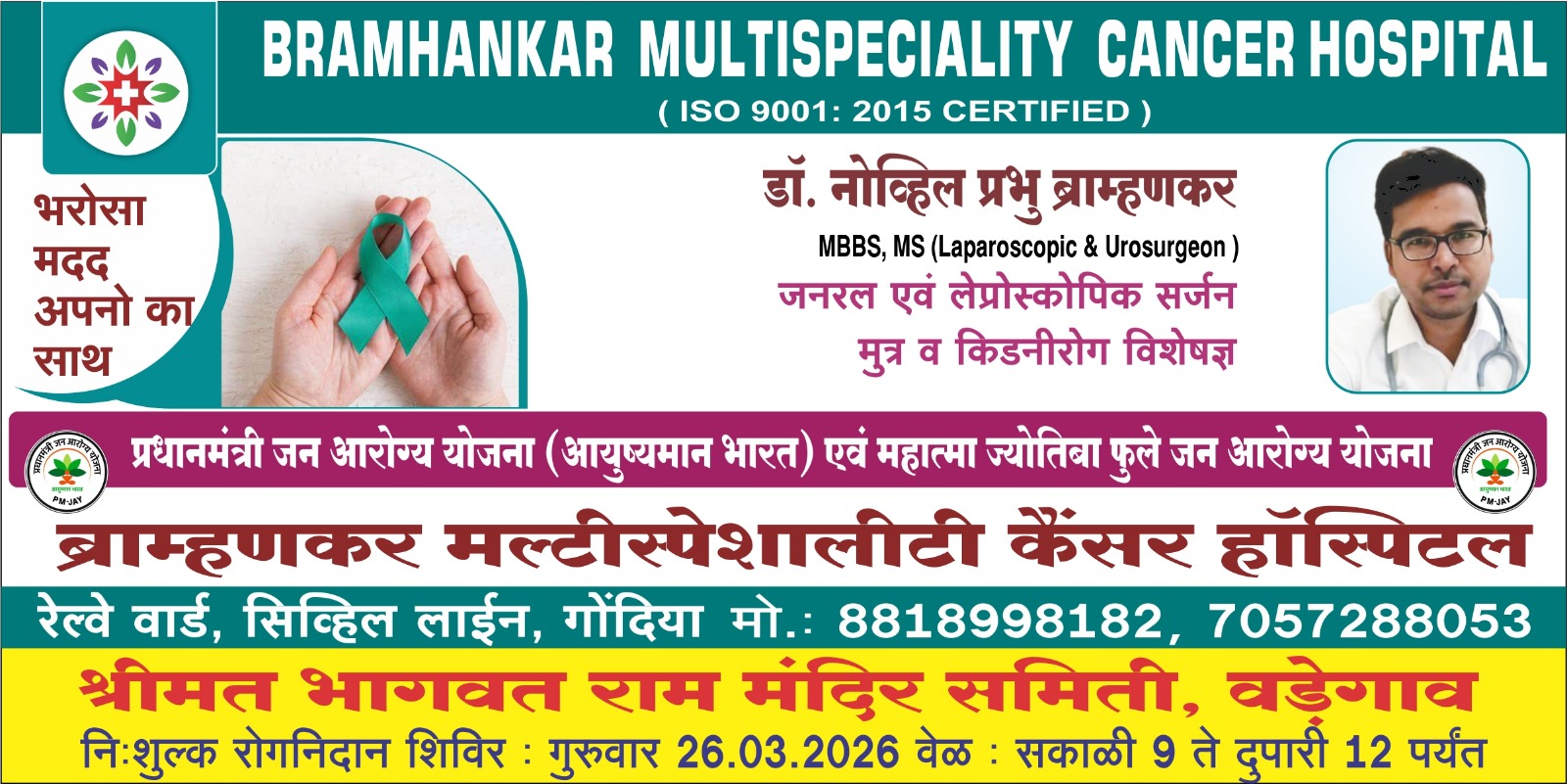 ब्राह्मणकर मल्टीस्पेशालिटी हॉस्पिटल गोंदिया तर्फे वडेगाव/सडक येथे 26 मार्च गुरुवारला भव्य मोफत आरोग्य महाशिबिर,